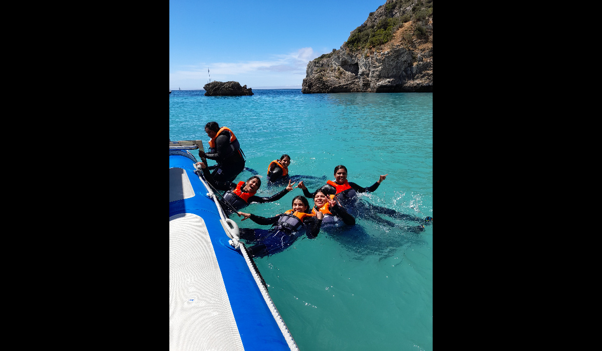- Após briefing de segurança, espera-nos um emocionante passeio de barco ao longo das praias onde poderemos dar uns mergulhos. Numa das nossas paragens, iremos desfrutar do momento épico do dia, e experimentar o Soft-Coasteering, com exploração aquática de labirintos e grutas marinhas e divertidos saltos para a água. Nas mais belas baías do mundo, vão viver momentos únicos e inesquecíveis em contacto com a natureza.